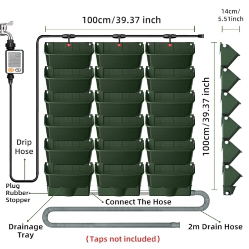 CEIEVER Hängende vertikale Wand Pflanze mit automatischem Bewässerungssystem 18 Stück, Platzsparende Pflanzenwand Vertikaler Garten Pflanzenwand Blumentopf Set für Hof Garten Balkon
