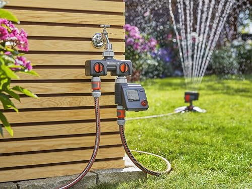 Automatische Bewässerung: Mit einer Gardena Bewässerungssteuerung wird Ihr Garten zuverlässig und komfortabel bewässert – auch wenn Sie nicht zuhause sind • Flexible Bewässerung: Es lassen sich drei unterschiedliche, voneinander unabhängige Zeitpläne (Bewässerungsstart, -dauer, – wochentage) erstellen • Einzigartige Benutzeroberfläche: Einfache und intuitive Programmierung dank Dreh- und Drückprinzip • Water Now: Eine manuelle Bewässerung z. B. zur Befüllung eines Eimers ist jederzeit und ohne Abnahme der Steuerung per Knopfdruck möglich • Lieferumfang beinhaltet: 1x Gardena Bewässerungssteuerung Select
