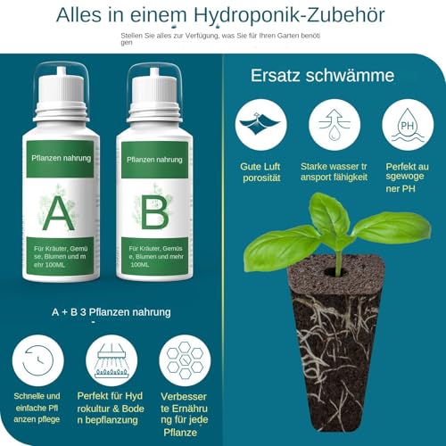 – Verbessertes Wachstum und Ertrag: Diese hydroponische Pflanzenfutter stützt die Nährstoffunterstützung von der Sämlinge bis zur Blüte und sorgt für einen effizienten und soillesslosen Anbau. Passen Sie die Geschwindigkeit für verschiedene Wachstumsphasen an, um die Blüte und Steigerung der qualität und Ertrag zu erweitern
