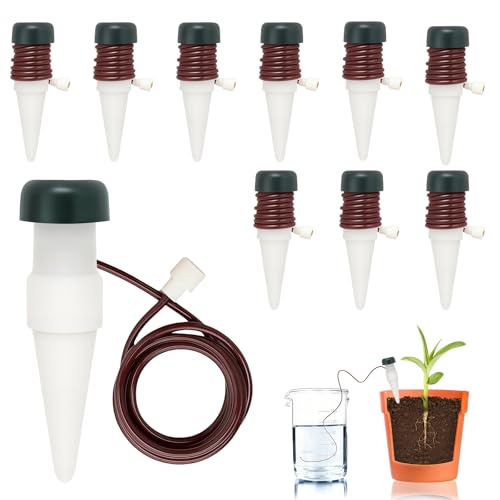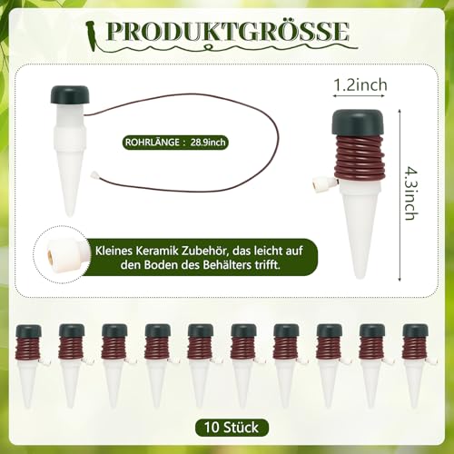 【Automatisches Bewässerungssystem】Dieses automatische Bewässerungssystem nutzt das Siphonprinzip, um Ihre Pflanzen bedarfsgerecht mit Wasser zu versorgen. Sobald der Boden trocken wird, gibt der Tonkegel langsam Wasser ab – perfekt für die tägliche Pflege oder längere Reisen • 【Einfache Anwendung】Einfach den Bewässerungskegel für 15 Minuten in Wasser einweichen, dann in die Erde stecken und den Schlauch in einen Wasserbehälter führen. Ohne Strom, ohne Timer – das System beginnt sofort zu arbeiten und versorgt Ihre Pflanzen zuverlässig • 【Langlebig & zuverlässig】Der Kegel besteht aus robuster Keramik und hochwertigem PP-Material. Das sorgt für eine gleichmäßige Wasserabgabe, lange Lebensdauer und zuverlässige Funktion – sogar bei wiederholtem Einsatz. Denken Sie daran, die Keramik regelmäßig zu reinigen • 【Breites Einsatzspektrum】Geeignet für Zimmerpflanzen, Balkonkästen, Gartenpflanzen und Blumenampeln. Dieses System funktioniert sowohl drinnen als auch draußen – ideal für Wohnzimmer, Terrasse, Büro oder Gewächshaus • 【Ideal für unterwegs】Ob im Urlaub, auf Geschäftsreise oder bei vollem Terminkalender – mit diesem System bleiben Ihre Pflanzen stets versorgt. Genießen Sie Ihre Zeit unterwegs, während Ihre Pflanzen dank Selbstbewässerung gesund bleiben