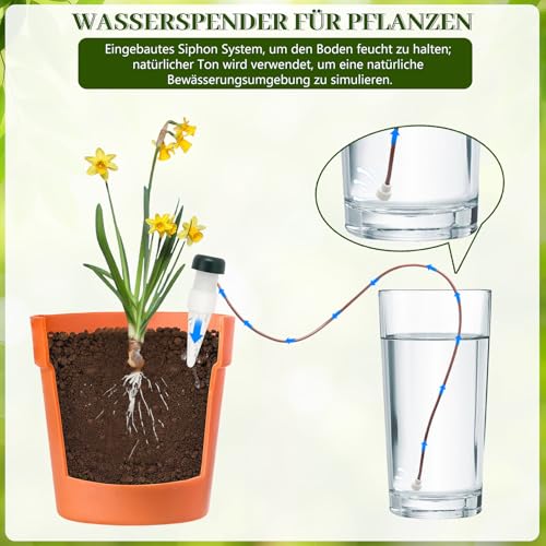 – 【Automatisches Bewässerungssystem】Dieses automatische Bewässerungssystem nutzt das Siphonprinzip, um Ihre Pflanzen bedarfsgerecht mit Wasser zu versorgen. Sobald der Boden trocken wird, gibt der Tonkegel langsam Wasser ab – perfekt für die tägliche Pflege oder längere Reisen