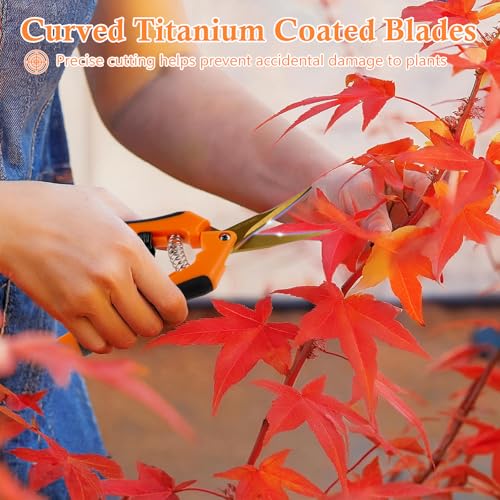 CXRYLZ-FUR 2 Stücke Gartenschere mit Gebogenen Titanbeschichteten Klingen, Ernteschere, Rosenschere, Bonsai Schere, Pflanzschere, Klein Blumenschere für Baumzweige, Blumen, Früchte