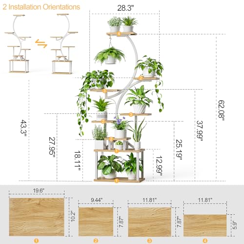 💡【Pflanzenständer mit Grow Light】Um das gesunde Wachstum von Zimmerpflanzen zu fördern, ist dieser Pflanzenständer mit Vollspektrum-Wachstumslichtern ausgestattet, die über einen Timer und mehrere Einstellungsmöglichkeiten verfügen. Die dreiköpfigen Leuchten sorgen dafür, dass Pflanzen in allen Schichten ausreichend Licht erhalten. Platzieren Sie das Regal überall drinnen, ohne die Pflanzen häufig ins Freie bewegen zu müssen. • 💕【8 Etagen, 157 cm S-förmiger Blumenständer】Dieses 157 cm hohe Pflanzenregal bietet 8 Etagen, 8 Topfständer und 1 Haken zum Aufhängen von Pflanzen. Es bietet reichlich Stauraum, um Ihre Pflanzen optimal zu präsentieren, und spart Platz, ideal für die Dekoration von Ecken. Die kreative S-Form macht diesen Pflanzenständer zu einer künstlerischen Ergänzung für Ihr Zuhause. • 🌱【Stabil und stabil】Der Rahmen dieses Metallwerksständers besteht aus 0,85 mm dickem Eisenrohr, was für eine feste Struktur und hohe Tragfähigkeit sorgt. Die Oberfläche ist mit spezieller Backfarbe beschichtet, um Rost zu vermeiden. Die 15 mm dicken Platten aus hochwertigem Spanplatten sind wasserdicht, um Korrosion, Verzug und Locken zu verhindern. • 🎁【Überraschungen für Pflanzenliebhaber】Dieser Pflanzenständer für mehrere Zimmerpflanzen hat eine elegante S-förmige Gestaltung und ist ein kreatives Geschenk, das Ihrem Wohnzimmer, Schlafzimmer oder Veranda einen Hauch von Natur verleiht. Ideal für Pflanzenliebhaber, bringt er die Freude an der Gartenarbeit ins Innere und ist ein einzigartiges, dauerhaftes Geschenk für verschiedene Feiertage. • 🛠【Einfach zu montieren】 Keine komplizierte Installation erforderlich. Wir liefern alle notwendigen Werkzeuge, einschließlich Schraubendreher und kleiner Schlüssel. Eine klare Anleitung erleichtert den Zusammenbau des abgestuften Pflanzenständers. Zudem sind Möbelbänder enthalten, um ihn bei Kindern und Haustieren gegen Umkippen zu sichern.
