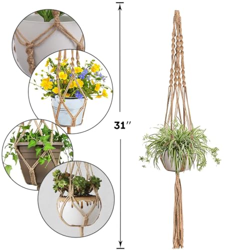🌷【PERFEKTE GRÖSSE】: Länge: 80 cm, 2 Makramee-Pflanzenaufhänger mit S-Haken, passend für verschiedene Formen und Größen von Pflanzgefäßen. • 🌷【HANDGEFERTIGTES GEWEBE】: Unsere hängenden Pflanzkörbe aus Juteseil sind stark gewebt und langlebig für den Langzeitgebrauch. • 🌷【EINFACH ZU VERWENDEN】: Stellen Sie Ihren Topf in den Haken und hängen Sie mit Hilfe der Haken Pflanzgefäße für den Innenbereich auf, wo immer Sie möchten. • 🌷【VIEL ANWENDBAR】: Dieser Makramee Blumenampel eignet sich perfekt für den Innen- und Außenbereich und verleiht Ihrer Haushalt Dekoration ein Bohemian-Element. • 🌷【PRAKTISCHES GESCHENK】: Hängende Pflanzgefäße für den Innenbereich sind perfekt für Pflanzenliebhaber, da sie Platz sparen und gleichzeitig verhindern, dass Haustiere Ihre Pflanzen beschädigen.