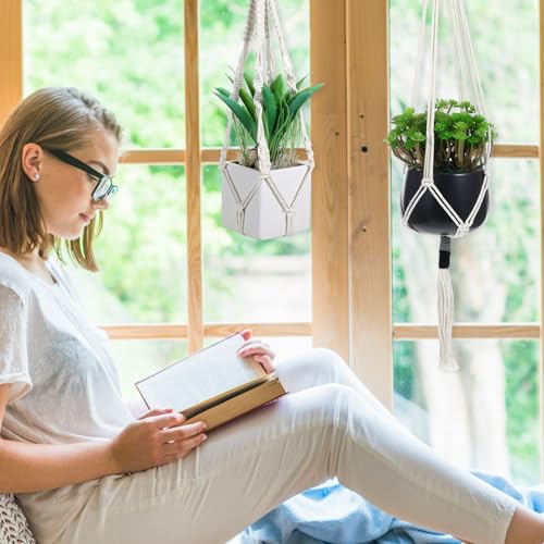 Nogeqi 2 Stück Makramee Blumenampel Hängend Innen, Baumwollseil Für Hängepflanztopf Außen, Boho Hängeampel Hängetopf Pflanzenhänger Für Garten Wohnzimmer Balkon Fenster (57/48cm)