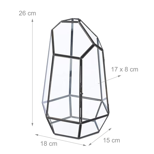 Relaxdays Pflanzenterrarium, Glas & Kupfer, 26x18x15 cm, Glaskasten Kakteen & Moos, geometrisch, Fensterbank, schwarz