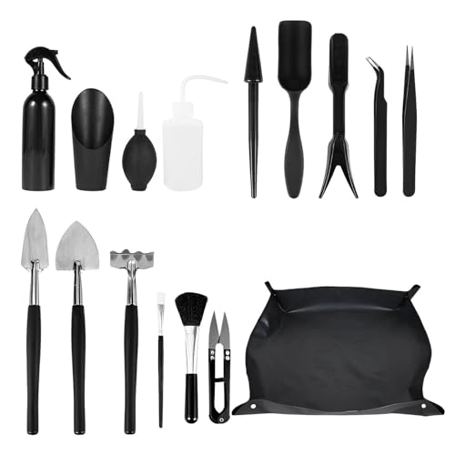 Sukkulente Werkzeuge Kit – 16pcs Mini Garten Hand Tools Set | Indoor Pflanze Zubehör mit Wasserflasche, Schaufeln, Rechen, Schaufel, Pinzette, Pinzette für Topfpflanzen, Kaktus, Bonsai, Sämling
