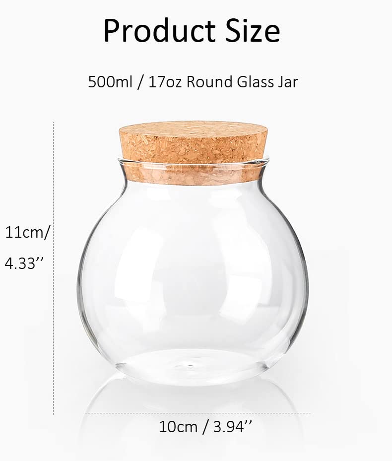 Glasbehälter mit Korkverschluss, Aufbewahrungsglas, als Terrarium verwendbar, rund, klar, 500 ml (17 fl. oz)