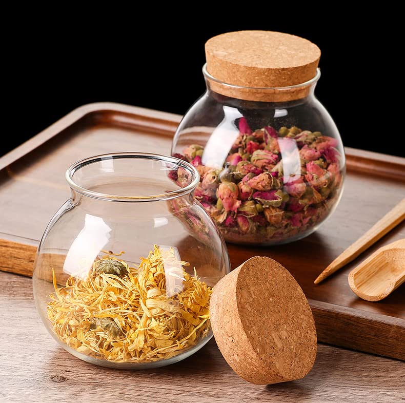 - Vielseitig nutzbares Glasbehälter-Set: ideal als Aufbewahrungsglas und alternativ als Pflanzenterrarien nutzbar - rund, klares Glas mit Korkdeckel.