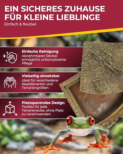 – STABILE KONSTRUKTION – Die robuste Fertigung dieser Höhle garantiert Langlebigkeit und ist perfekt als Versteck für Reptilien, Amphibien und andere Terrarienbewohner geeignet – ideal für ein sicheres Zuhause.