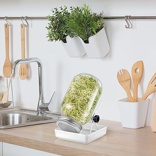 ecooe Sprossen Keimglas 1er Set keimgläser für Sprossenglas Sprouting jar mit 1 Wasserschale 1 Filtergitterabdeckungen aus Edelstahl 304 und 1 Ständer