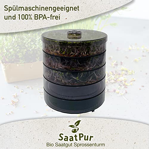 SaatPur® Keimsprossenbox Set 4 mit Vier Etagen als Sprossen Keimgerät: Sprossen Anzucht sowie Microgreens Anzuchtschalen. Keimbox, Keimschale, Keimschachtel, Sprossenbox, Sprossenhaus, Keimgerät
