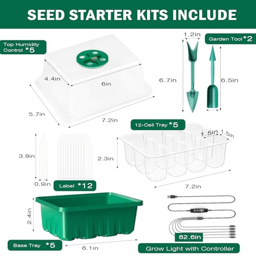 – 🌱【Was Sie erhalten】 Das Samen-Starterset enthält: 5 Samenschalen (je 12 Zellen), 5 einstellbare Feuchtigkeitskuppeln, 5 Wachstumslichter (je 8 LEDs), 5 durchsichtige Deckel, 5 Bodenschalen, 1 intelligentes Steuerungssystem, 12 Pflanzenetiketten , 2 Pflanzenwerkzeuge, Samenstarter, perfekt zum Keimen von Blumenpflanzen und zum Starten des Samenwachstums.
