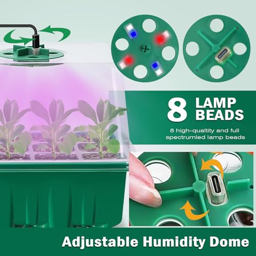– 🌱【Vollspektrum-LED-Wachstumslichter】Jede Samenstartschale wird mit 8 LED-Vollspektrum-Wachstumslichtern geliefert. Es enthält 2 blaue und 2 rote Lichter, um die Photosynthese für die Samenkeimung zu ermöglichen, genau wie natürliches Sonnenlicht. Jede transparente Feuchtigkeitskuppel verfügt über 4 verstellbare kreisförmige Lüftungsöffnungen, die durch Drehen leicht angepasst werden können, um die Innenfeuchtigkeit und -temperatur zu regulieren, die Luftzirkulation zu fördern und den Samenkeimungsprozess zu steuern.