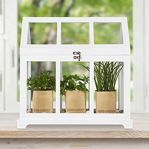 Basics: Weißes Zimmer Gewächshaus im 2er Set aus MDF mit gehärteten Glasfenstern – Zwei Größen • Indoor: Mini-Gewächshaus ist speziell für den Innenbereich konzipiert – Ideal für Pflanzenliebhaber • Für die Fensterbank: Pflanzenhaus für Anbau und Zucht von Kräutern, Blumen u. Sukkulenten am Fenster • Smart: Dach des Treibhauses lässt sich aufklappen – Luftzirkulation und Klima optimal regulierbar • Dekorativ: Mini Glashaus im Landhausstil – Mit Kerzen, Trockenblüten und Dekosteinen verzierbar