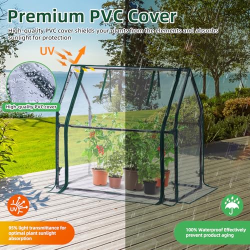 Ohuhu Mini Gewächshaus Zimmergewächshaus PVC Foliengewächshaus mit wasserdichte Matte, Tomatenhaus Folie Gewächshaus Klein für Sämling Pflanze die Indoor Kräutergarten 91.5×45.5×84 cm