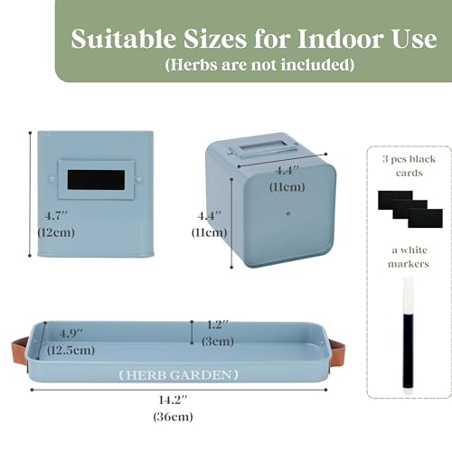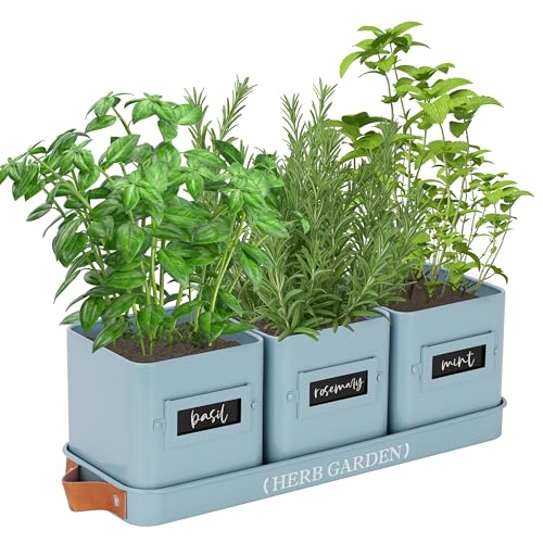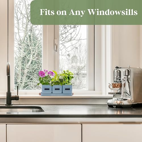 – Kräutergarten auf der Fensterbank: Unser Kräutergarten für Fenster enthält drei Töpfe und ein Tablett mit einem Griff, wobei jeder Topf 11,2 cm B x 11,9 cm H misst und das Tablett 36,1 cm L x 12,4 cm B x 3 cm H. Es ist ideal für den Anbau einer Vielzahl von Kräutern wie Minze, Rosmarin, Basilikum, Thymian usw. Maßgeschneidert für das Kräuterwachstum, bieten unsere Indoor-Kräutertöpfe eine optimale Umgebung für die Pflege Ihrer Kräuter. Ihr Bauernhaus-Design und die kompakte Größe machen sie perfekt für die Platzierung auf einer Fensterbank oder einer Küchenarbeitsplatte.
