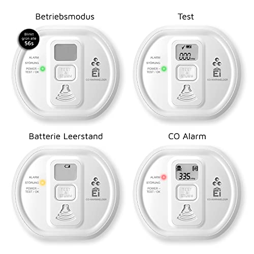 WIRKSAMER SCHUTZ: Der Kohlenmonoxidmelder Ei208D detektiert erhöhte Konzentrationen des unsichtbaren Atemgifts CO in der Raumluft und schützt Sie und Ihre Familie frühzeitig vor Gefahr • EINFACHE HANDHABUNG: Dank Display zur Anzeige von CO-Konzentration und Handlungsanweisungen, fest eingebauter 10-Jahres-Batterie sowie Test-/Stummschaltknopf ist der Warnmelder äußerst benutzerfreundlich • ZERTIFIZIERT NACH ERHÖHTEN BEDINGUNGEN: Der Ei208D ist neben privatem Wohnbereich auch für Wohnwagen und Wohnmobil sowie für Sportboote zugelassen und insbesondere für Häuser mit Kaminofen oder Gasheizung unerlässlich • GUTES GEDÄCHTNIS: Durch den Ereignisspeicher des Ei208D werden Sie bei einem Alarm in Ihrer Abwesenheit zuverlässig durch eine rot blinkende LED sowie eine Anzeige auf dem LCD-Display informiert • HERGESTELLT IN EUROPA: Unsere Kohlenmonoxidmelder werden im eigenen Werk in Irland hergestellt und umfangreichen Funktionstest unterzogen – für höchste Qualität und Sicherheit • DEUTSCHE VERSION: Dieses Produkt ist nur für den deutschsprachigen Raum geeignet, da die Bedienungsanleitung ausschließlich in deutscher Sprache enthalten ist • LIEFERUMFANG: 1 x Kohlenmonoxidmelder, inklusive Handbuch, Schrauben und Dübeln sowie einer fest eingebauten 10-Jahres-Batterie, 120 mm Durchmesser, 1 x 178 g