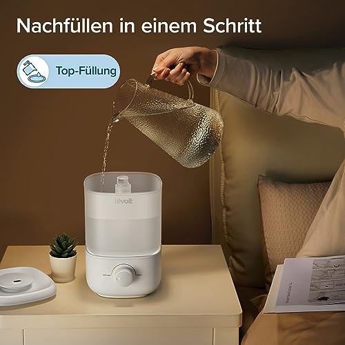 LEVOIT Top-Fill Luftbefeuchter bis 25H für Schlafzimmer Kinderzimmer, 23dB leise Humidifier für Baby Pflanzen, Raumbefeuchter mit 360° drehbarer Düse, automatische Abschaltung