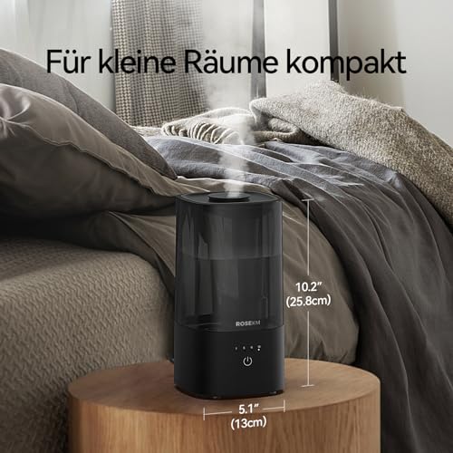 Roeskm Luftbefeuchter für Schlafzimmer, Kühlmist-Luftbefeuchter für zuhause, Pflanzen und Babyzimmer, leiser ultraschallbasiert mit 360°-Düse, automatischer Abschaltung, ohne Filter, schwarz