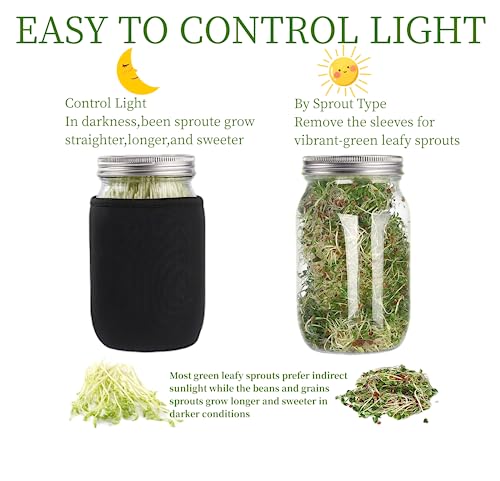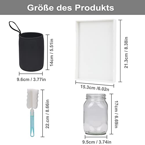 🌱 【Komplettes Sprossen-Set】 Mit diesem Sprossenglas-Set können Sie zu Hause Ihre eigenen leckeren Sprossen und Microgreens züchten. Das Set enthält 2 x 1000ml Mason-Gläser mit weitem Mund, 2 Sprossendeckel, 1 Tropfschale, 2 Schirmdeckel, 2 Edelstahlhalter und 1 Einmachbürste (Samen nicht enthalten). • 🌱 【Sichere und exzellente Materialien】 Die Keimdeckel sind aus rostfreiem Stahl gefertigt und 100% rostfrei. Die Glasgefäße sind bleifrei. Die Tropfschale ist aus hochwertigem Kunststoff gefertigt und hat das schöne unzerbrechliche Aussehen von Keramik, was sie stärker und haltbarer macht. Der verstellbare Ständer hält das Glas in einem optimalen Winkel, um eine gute Luftzirkulation und Drainage zu gewährleisten. • 🌱 【Einfache Keimung der Samen】Sie brauchen nur Samen und Wasser. Das professionelle Design sorgt für eine ausreichende Belüftung und Drainage, die beide für eine erfolgreiche Keimung unerlässlich sind. Weichen Sie die Samen einfach in etwa 1,5 cm Wasser ein, und schon sind sie keimbereit. Weichen Sie die Samen etwa 8 Stunden lang ein und spülen Sie sie dann zweimal täglich mit Wasser ab, und Sie werden in nur 3 bis 5 Tagen frisch gekeimte Setzlinge haben. • 🌱 【Design-Details】 Unsere Schalen sind hoch genug, um das ablaufende Wasser aufzufangen und die Arbeitsfläche nicht zu benetzen, der Edelstahlständer sorgt für eine gute Stabilität der Mason-Gläser und die hochtransparenten Keimgläser ermöglichen es Ihnen, die Keimlinge beim Keimen zu beobachten. Mit unserer einzigartigen Schattenabdeckung können Sie die Umgebung Ihrer Sprossen kontrollieren, die Keimzeit verkürzen und längere Sprossen wachsen lassen. • 🌱 【Gesund und unterhaltsam】 Der Anbau von Sprossen ist ein Spaß für die ganze Familie, und Kinder können auf spielerische Weise lernen, ihre eigenen Lebensmittel anzubauen. Züchten Sie Ihre eigenen Sprossen und Microgreens zu Hause, um ein frischeres und nahrhafteres Erlebnis zu haben! Sprossen liefern fast so viel Chlorophyll, Enzyme und Nährstoffe wie anderes Gemüse. Dieses Sprossenglas-Set ist ein schönes Geschenk für Familie, Freunde und Kollegen für alle Feiertage und Jubiläen.