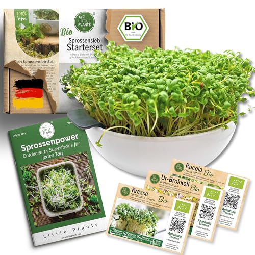 🌱SPROSSENSIEB STARTER SET – Ideal für Einsteiger und Profis. Inklusive 3 Sorten Sprossen Samen. Unsere Sprossensiebe sind ideal geeignet um eigene Keimlinge zu ziehen. • 🍀3 SORTEN BIO SPROSSEN SAMEN – Die beliebtesten Sorten in Bio Qualität im Set, Kresse Sprossen Brokkolisprossen Rucolasprossen und mehr. • 🥗SUPERFOODS MIT GESCHMACK – Unsere Bio Sprossen und Bio Microgreens sind besonders nahrhaft. Zudem bietet unser sprossensieb Set eine wahre Genussreise durch die verschiedensten Geschmäcker. • 🌍KEIN ROST & SPÜLMASCHINENFEST – Unser Deckel besteht aus hochwertigem ABS, ist spülmaschinenfest und natürlich rostfrei. Dazu gibt es eine hochwertige Porzellanschale. • 📗NUR BEI UNS! – Das Sprossenpower Ebook von Little Plants. Hier erhältst du wertvolle Tipps zur Anzucht und dem Genuss deiner Sprossen und Microgreens. Bei Fragen sind wir jederzeit für dich da.