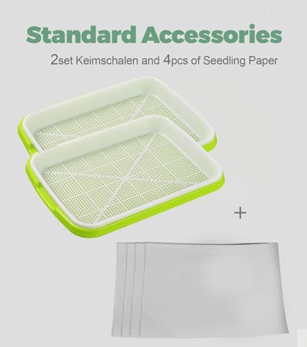 4 ZUSÄTZLICHE PFLANZPAPIERE – 4 Anzuchtpapiere, die das Durchfallen kleiner Samen verhindern und sich für verschiedene Saatgutgrößen eignen. • MODERNES DESIGN MIT DOPPELSCHICHTEN – Ästhetisches und funktionales Design für die Keimung von Microgreens, Rucola, Brokkoli und anderen Sprossen. • HOCHWERTIGE PP-MATERIALIEN – Robustes, langlebiges PP-Material, das sicher, leicht zu reinigen und wiederverwendbar ist. • 2ER SET MICROGREENS ANZUCHTSCHALEN – Zwei Keimschalen (32 x 23,5 x 5 cm), fördern die Samenkeimung und erleichtern das Wurzeln. • GESUNDHEITSVORTEILE VON MICROGREENS – Microgreens liefern wichtige Vitamine und Nährstoffe, die Ihre Ernährung bereichern.