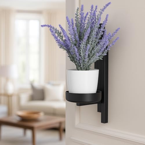 FRAMADO – Pflanzregal Wand – Blumenhalter Hängend – aus Metall, Moderne Wand Deko für Wohnzimmer, Jugendzimmer, Schlafzimmer, Küche – 12x15x32cm – Schwarz – Topflochdurchmesser 12 cm