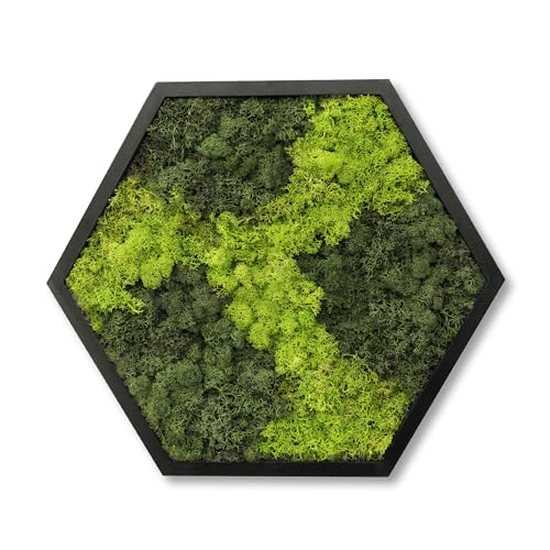 HelloMoss Moosbilder mit Rahmen 40cm – Moosbild XXL mit Island Moos Konserviert – Luxus Deko für Ihr Zuhause – Mooswand Deko Wohnzimmer Groß