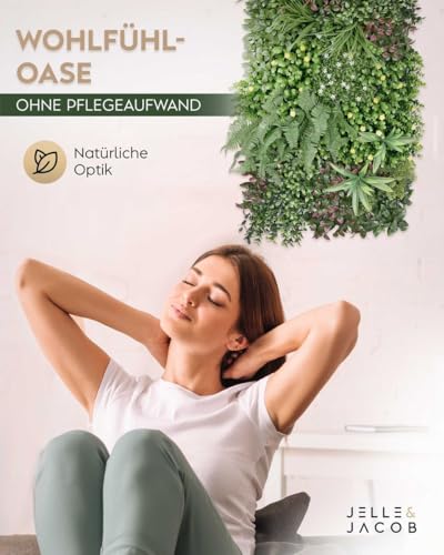 JELLE & JACOB Künstliche Pflanzenwand Indoor & Outdoor, Blumenwand Evergreen, 50×100 cm, pflegeleicht & langlebig – für Wohlfühl-Atmosphäre, Kunstpflanzen Wand, Green Wall, Pflanzen Wand