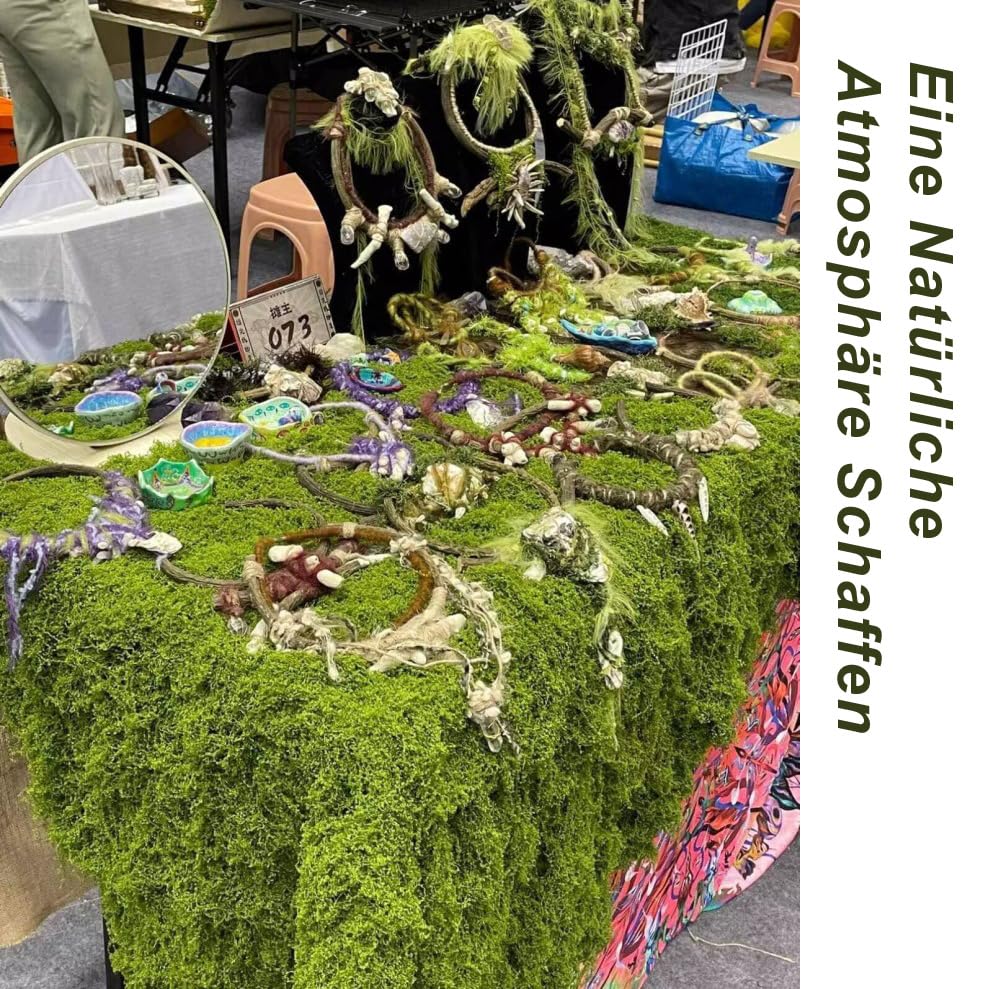 – Kreatives Design:Kunstmoos kann zur Herstellung von Aquarien, Moosbilder, Mooswand,Terrarienmoos, Moosgirlanden, Hängekörben, Moostischdecken, Moosmatten, Moos modellbau usw. verwendet werden.