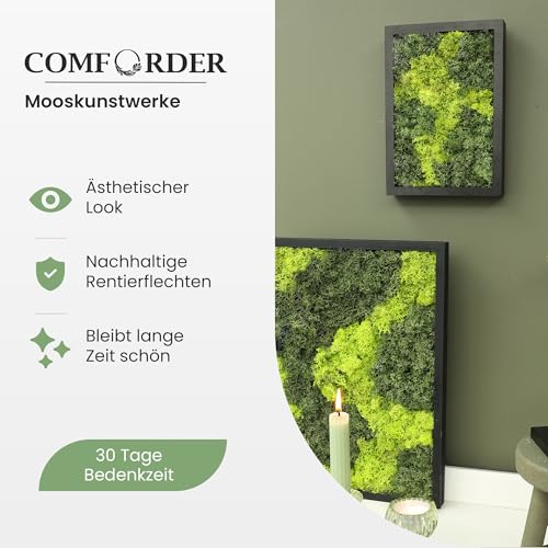 comforder Rechteckiges Wandbild mit echtem Moos (24 cm), Konserviertes Moosbild mit Holzrahmen, Natur Wanddeko fürs Wohnzimmer