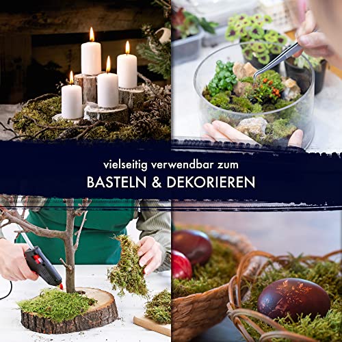 🍃 Moos-Platten: handgepflücktes, echtes Natur-Moos (nicht künstlich, fake, faux). Das Plattenmoos wurde schonend getrocknet, gefärbt und konserviert und bleibt dadurch jahrelang grün & frisch • 🔎 100g Bastelmoos decken ca. eine Fläche von 30x30cm ab. Das Flachmoos / Lappenmoos kann aus mehreren Stücken bestehen, die sich leicht zu einer Moos-Matte zusammenfügen lassen • ✅ Mit Qualitätsgarantie: per Hand gereinigt, intensive & lichtbeständige Farben, reines EU-Produkt, garantiert ohne Insekten oder Parasiten • 🖼️ Kein Wasser / keine Pflege notwendig: das lebende Dekomoos / Kunst-Moos muss nicht gepflegt oder gegossen werden und eignet sich daher ideal für ein Moos-Bild / Mooswand (DIY Set) zum selber machen • 🧚🏼‍♀️ Vielseitig zum Basteln oder als Deko: Osternest, Ostern-Deko, Krippe, Floristen, Weihnachtsdeko, Adventskranz, Modellbau (Miniatur), innen/indoor Wand-Deko, Wandverkleidung, Frühlingsdeko, Mooskranz, Terrarium (Reptilien)