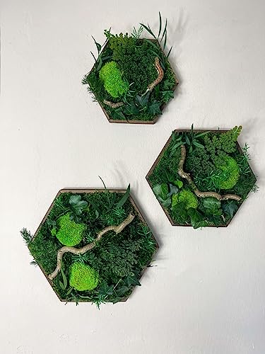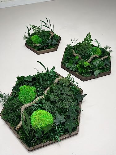 Moosbild Hexagon Efeuwald Holz Rahmen Sechseck Gedankenwunder Manufaktur
