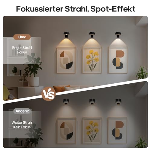 – 💡【Schmal LED Spot】Durch ein hochpräzises Objektivdesign präsentiert das Licht einen weichen Kuppelstrahl durch eine hohe Vergrößerung, der die Rande des Bildrahmens gleichmäßig bedeckt, um starke Lichtflecken durch direkte Lichtpunkte zu vermeiden. Im Vergleich zu herkömmlichen Unterleuchten können Malerleuchten die Farben und Details des Werkes deutlicher präsentieren, Ihr Werk stärker fokussieren.