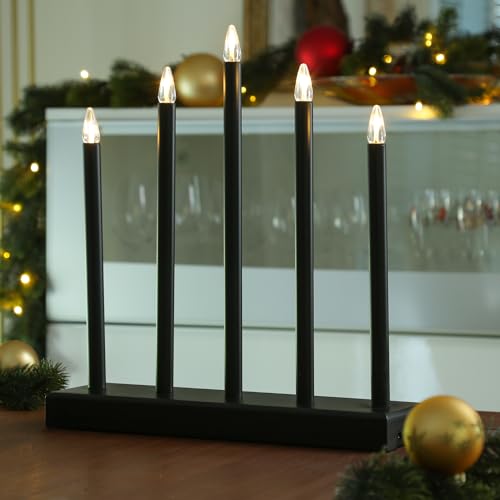 MARELIDA LED Fensterleuchter Holy – 5flammig – warmweiße LED – H: 40cm – Batteriebetrieb – Timer – schwarz