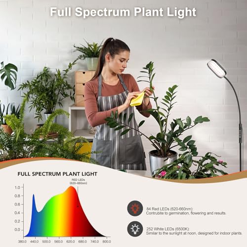 Mojimdo 264 LEDs Pflanzenlampe mit höhenverstellbarer Stange, 10W Vollspektrum Pflanzenlicht mit Timer, 5 Helligkeitsstufen, 3 Höhenstufen, 360° Schwanenhals, Pflanzenleuchte für Zimmerpflanzen