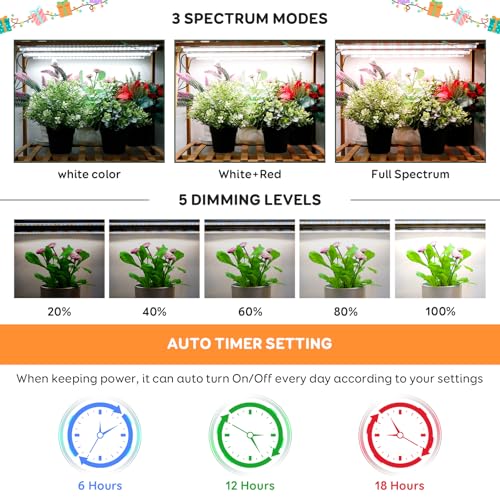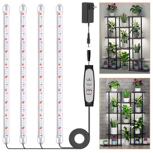 Niello 4 Stäbe Pflanzenlichtstreifen, Pflanzenleuchten für Zimmerpflanzen, Vollspektrum Sonnenlicht Wachstumslampe mit Auto On/Off 6/12/18H Timer, 5 dimmbare Stufen grow lampe