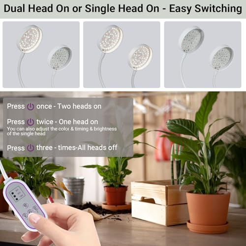 Pflanzenlampe LED Vollspektrum, 2 Köpfe Pflanzenlicht Wachstumslampe für Zimmerpflanzen mit Timer, Indoor Grow Lampe mit Schwanenhals, Pflanzenleuchte Dimmbar in 10 Stufen