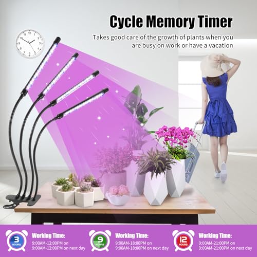 – Automatischer Ein-/Ausschalt-Timer: Der integrierte Timer mit Wiederholungsfunktion schaltet das Licht täglich automatisch zur gleichen Zeit ein und aus. Wählen Sie zwischen 3-, 9- oder 12-Stunden-Zyklen. Einmal eingestellt, läuft es völlig automatisch und versorgt Ihre Pflanzen zuverlässig, während Sie arbeiten oder im Urlaub sind