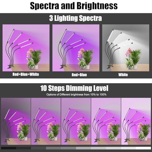 Railee Pflanzenlampe LED Vollspektrum Grow Lampe Pflanzenleuchte Pflanzenlicht Pflanzen LED Wachstumslampe für Pflanzen mit Zeitschaltuhr 3 Farbmodi 10 Lichtstärken 4 Köpfe