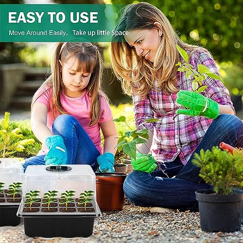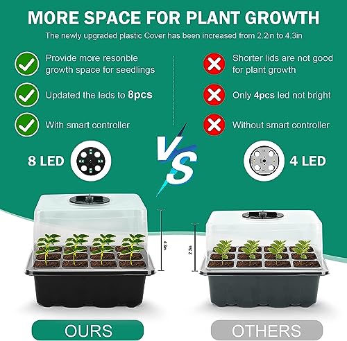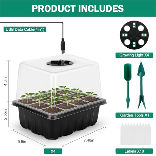 RIOGOO 4er-Pack Samen-Starter-Tablett mit Wachstumslicht, Timing-Samen-Starter-Set mit Einstellbarer Helligkeit und Luftfeuchtigkeit, Gewächshaus-Keimungsset (12 x 4,48 Zellen)