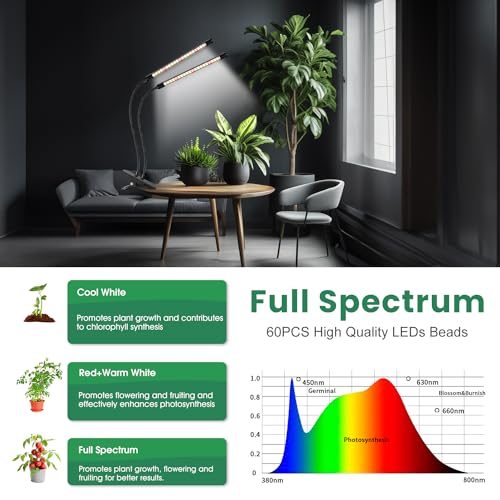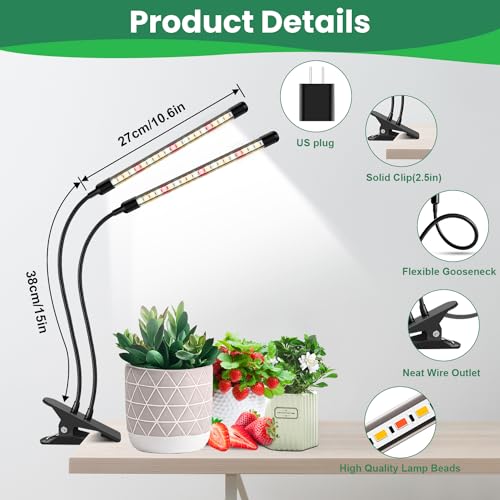 Garpsen wachsen Lichter für Indoor-Pflanzen, 2 Köpfe Vollspektrum-LED-Pflanze wachsen Lichter, 40 LEDs Clip auf Pflanzenlicht für kleine Pflanzen mit Timer-Einstellung (6/12/16H), 5 Level dimmbar