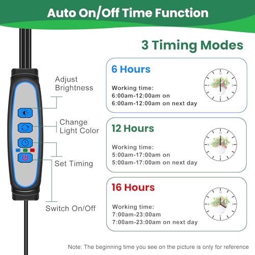 [6/12/16H Timer]–Die meisten der Pflanze Lichter mit eingebauten Controller auf dem Markt nicht die zeitliche 12H überschreiten, und unsere wurde aktualisiert, um 12H überschreiten, die mehr freundlich zu Licht-liebenden Pflanzen ist, so dass die Pflanzen besser wachsen. Stellen Sie die Timing-Zeit (6H/12H/16H), müssen Sie nicht manuell ein-und ausschalten das Licht wachsen. Das Grow-Licht wird bequem zu nimmt gute Pflege Ihrer Pflanzen, wenn Sie zur Arbeit gehen oder im Urlaub. • [Volles Spektrum & kostengünstig]–Diese 2 Köpfe wachsen Licht ist mit 6 Rot +14 Weiß + 20 Warmweiß-LEDs für jede Lichtröhre (40 LEDs insgesamt) ausgestattet, ist das Spektrum nahe dem natürlichen Sonnenlicht, die für Zimmerpflanzen in allen Wachstumsstadien geeignet ist, ist die Lichtfarbe freundlich zu den Augen, geringer Stromverbrauch, Energieeinsparung, ideal für kleine Pflanzen. • [3 Beleuchtungsmodi und 5 Dimmstufen]–Die Indoor-Grow-Lampe enthält rote/blaue/warmweiße LEDs, Sie können 3 Farbmodi (Rot+Blaues Licht, Warmweißes Licht & Mischlicht) und 5 Helligkeitsstufen von 20% bis 100% wählen, die den Mangel an natürlichem Sonnenlicht effektiv ergänzen und das Wachstum der Pflanzen in allen Stadien fördern, besonders geeignet für Pflanzen in der Aussaatphase. • [Weite Beleuchtungsfläche & einfache Bedienung]–Diese Pflanzenleuchte für den Innenbereich verfügt über einen 360° flexiblen Schwanenhals aus Edelstahl, mit dem die Beleuchtungsfläche erweitert und der Winkelabstand zwischen Licht und Pflanzen leicht eingestellt werden kann. Stromversorgung über USB oder AC-Netzstecker (USB-Netzadapter im Lieferumfang enthalten), ist es tragbar und bequem zu Hause oder im Büro zu verwenden. • [Volles Spektrum & Kostengünstig]–Unterschied von nur weißem Licht oder rot/blau wachsen Licht, das 3 Köpfe wachsen Licht ist mit 9 Rot +4 Blau + 7 Warm White LEDs für jede Lichtröhre (60 LEDs insgesamt) ausgestattet, das Spektrum ist reicher, es ist ideal für alle Arten von Zimmerpflanzen in allen Wachstumsstadien, geringer Stromverbrauch, Energieeinsparung, ideal für kleine Pflanzen.