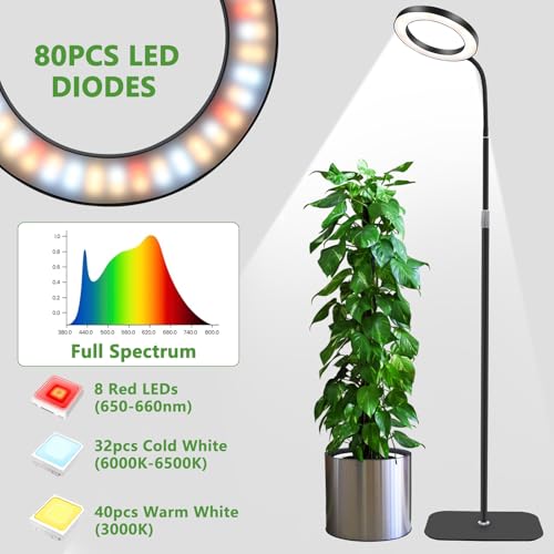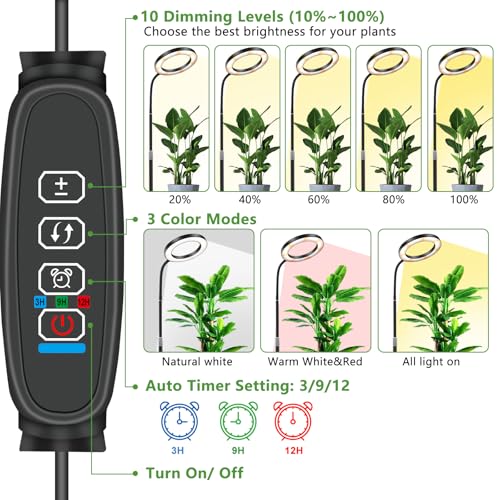 【Designed for medium and large plant growth】 Unser Wachstumslicht mit Ständer ermöglicht es Ihnen, die Höhe von 42 bis 155cm einzustellen, insgesamt 155cm, Es ist für mittlere und große Pflanzenwachstum konzipiert. Dieses Pflanzenwachstumslicht verfügt über ein verstellbares Doppelkopfdesign, das sich um 360° drehen kannEs ist mit einer hochwertigen rutschfesten Basis ausgestattet (wird nicht umkippen), die Stabilität gewährleistet. Es ist ideal für Hausgartenarbeit, Blumenausstellungen, große Topfpflanzen und große Zimmerpflanzen • 【Luz de crecimiento de espectro completo con 80LED】: Luz de crecimiento compacta con LEDs super brillantes de alta calidad, longitud de onda de espectro completo de 380nm-800nm, incluyendo blanco 6000K-6500K/40LEDS, blanco cálido 3000K-3200K/32LEDS, rojo 650-660nm/8 LEDS. Es tan cercana a la luz natural que es como si la luz del sol entrara en tu sala de estar. Adecuada para todas las etapas de crecimiento • 【3 Lichtmodi und 10 Dimmstufen】: Die Pflanzenlampe hat 3 Farbmodi (weißes Licht, rotes Licht + warmes Weiß und gemischtes Licht) in 10 dimmbaren Helligkeitsstufen. Es kann auf 10%, 20%, 30%, 40%…80% und 100% Helligkeit eingestellt werden. Auf diese Weise können Sie die Helligkeit und das Spektrum der Pflanzenlampe einstellen, um Ihren Pflanzen zu einem gesunden Wachstum zu verhelfen. Geeignet für verschiedene große oder kleine Pflanzen und verschiedene Wachstumsstadien, wie z.B. Samenansatz, Stamm- und Blattwachstum, Blüte und Fruchtbildung • 【Auto-off Funktion und Timer】: LED-Pflanzenlicht mit Auto-On/Off und Memory-Funktion, Pflanzenlicht mit 3 Timer-Einstellungsoptionen (3H / 9H / 12H). Einmal eingestellt, schaltet sich das Pflanzenlicht jeden Tag automatisch ein und aus. So können Sie sich auch im Urlaub oder am Wochenende um Ihre Lieblingspflanzen kümmern • 【Service】Wir möchten Ihnen ein wunderbares Einkaufserlebnis bieten.Wenn Sie Hilfe benötigen, senden Sie uns bitte eine Nachricht und wir werden Ihnen helfen, alle Probleme zu lösen, bis Sie zufrieden sind
