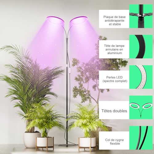 Olubfdh LED Pflanzenlampe Vollspektrum, 2-Kopf Grow Lampe mit Timer & Fernbedienung, Höhenverstellbares Pflanzenlicht für Zimmerpflanzen, Pflanzenregal, Gewächshaus, Hydrokultur Indoor