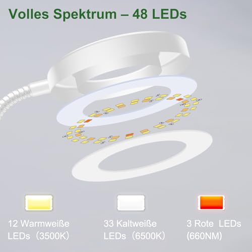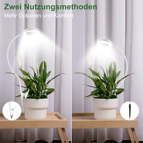 Pflanzenlampe LED Vollspektrum, Pot Clip 6500K Grow Light, zwei Installationsoptionen Pflanzenlicht, 3 Farbtemperatur LED Grow Lampe mit 360° Schwanenhals, 6/12/16H Timer, 5 Helligkeit (Weiß 1 Stück)