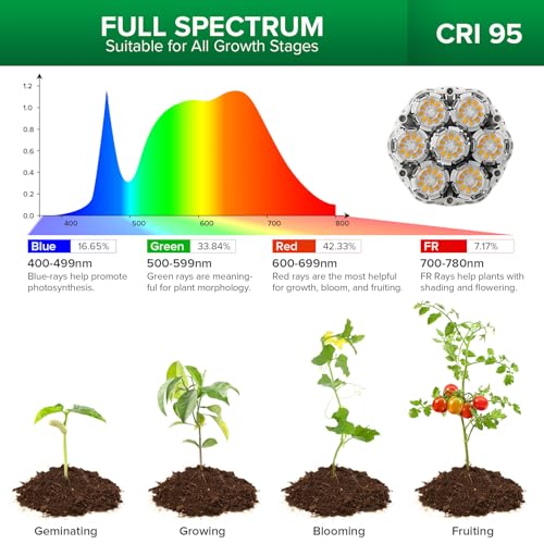 – 4000K VOLLSPEKTRUM: SANSI Pflanzenlampe imitiert das Sonnenspektrum und deckt das gesamte sichtbare Spektrum von 400nm bis 780nm ab, unendlich nahe an 4000K natürlichem Sonnenlicht, ideal für jeden Zyklus des Pflanzenwachstums, fördert effektiv das Pflanzenwachstum und verbessert den Ertrag und die Qualität der Ernte.