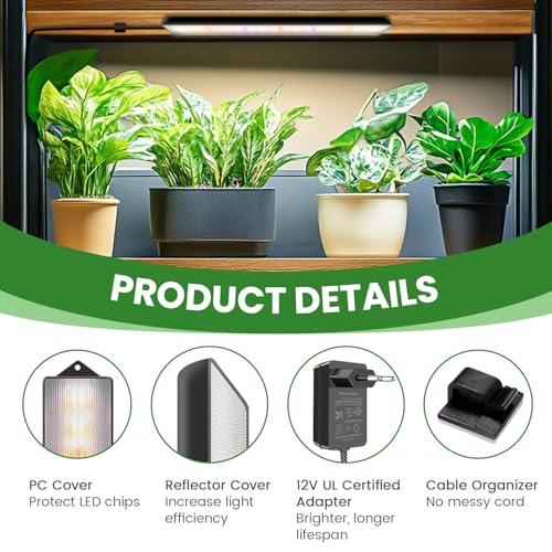 – Einfache Installation: Im Lieferumfang sind Schrauben, Kabelbinder und doppelseitiges Klebeband enthalten, um eine flexible Installation an Pflanzenregalen, unter Schränken oder an Wänden zu ermöglichen. Das 3 Meter lange Netzkabel macht es ideal für Büros, Innenregale, Gewächshäuser und mehr.