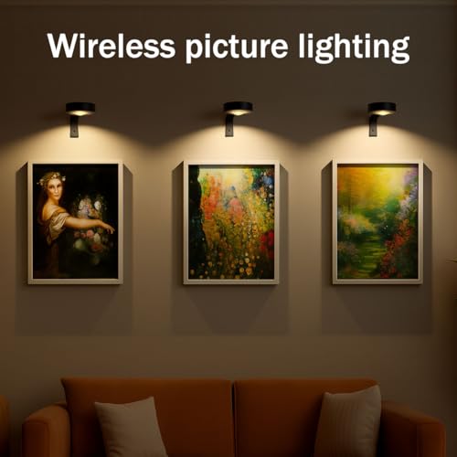 Wandlampe akku 3er Set, Led Wandleuchte ohne Stromanschluss, Bilderleuchte Kabellos, RGB & Weißlicht, Dimmbar, Fernbedienung, Timer, Nachttischlampe, Batterie Lampen für Bilder, Dartboard, Wanddeko
